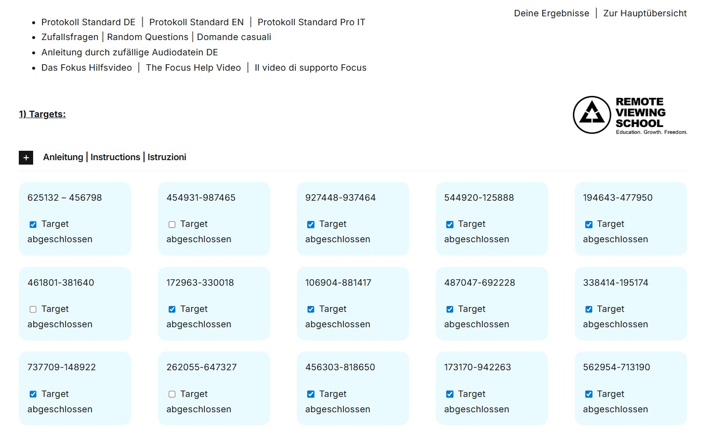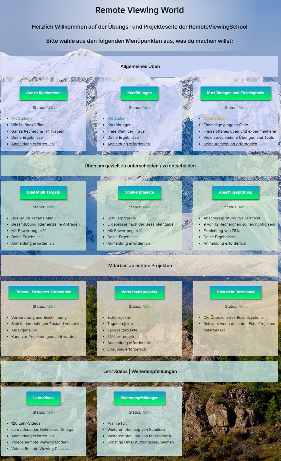 Die Remote Viewing World Übungsseite ist in der Ausbildung inkludiert